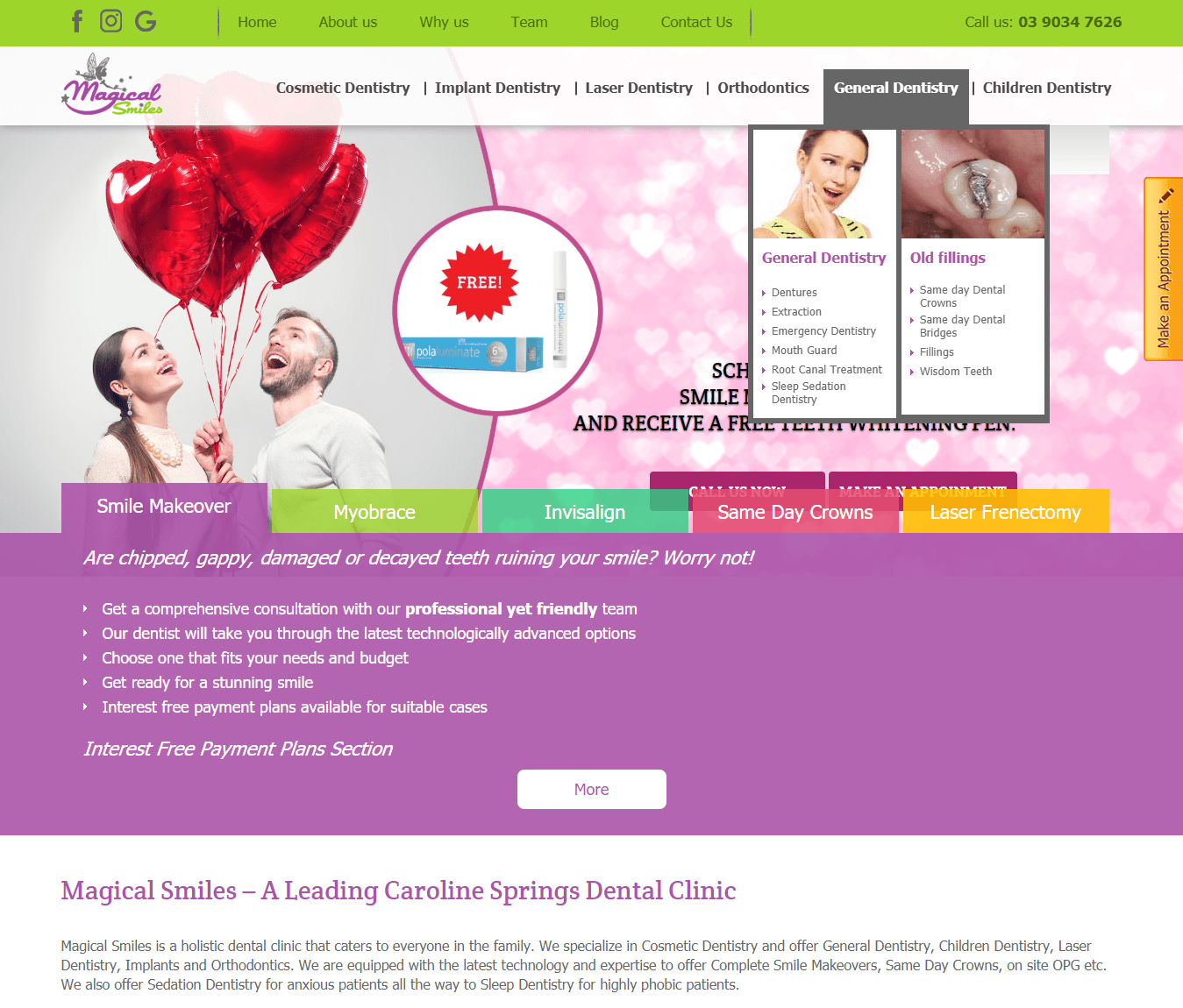 Magical Smiles is a holistic dental care clinic based in Caroline Springs and in operation since 2009. Despite offering specialized services with the latest technology, not many prospective patients were aware of the clinic. As a result, they would often be left with many free appointment slots on most days, which was an under-utilization of the specialist resources they had. RMB helped Magical Smiles achieve much needed visibility with SEO and SEM, and the result, an appointment register that’s booked way in advance!